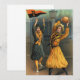 Ilustração de design esportivo vintage com jogadoras de basquete feminino. As garotas têm a letra "P" nos uniformes.