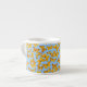 Uma bonito caneca de café expresso com padrão de borboletas Ouros, pintada em aquarela por Judy Adamson, sobre fundo azul-céu.
