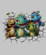 Um grupo de dinossauros bebês coloridos e alegres espiando uma parede rachada, mostrando suas personalidades divertidas e amigáveis. O design vibrante inclui tons verdes, azuis, laranja e vermelhos, criando uma cena alegre e viva.