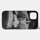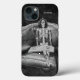 Mostre a sua personalidade com este esqueleto de Halloween, antigo colchão preto e branco, gótico e engraçado, sentado na cadeira com um livro e um caso de cigarro iphone 13. Imagem copyright Marg Seregelyi Fotografia.