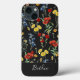 Ilustrações botânicas vindas de flores silvestres: papoilas, margaridas, bluebells convertidas em um padrão de carvão de cinza escura ou fundo negro de carbono e nome editável, iniciais ou monograma, para um amante da natureza e da flor, e uma alma romântica