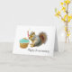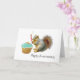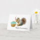 Um esquilo põe uma vela acesa sobre um cupcake. Adicione suas próprias palavras para tornar este aniversário ainda mais especial.