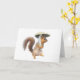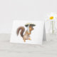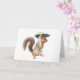 Um esquilo segura um grande cogumelo como um guarda-chuva nesta carta fofa.