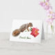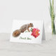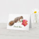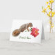 Um pequeno esquilo segura uma grande peônia rosa neste doce cartões de agradecimentos.