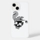 Um esquilo voador de cinza subindo sobre um crânio preto inclinado. Este roedor feio tem suas garras em direção a uma bolota. A boca está cheia de dentes afiados.