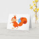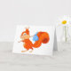 Um design de desenho engraçado de um esquilo saindo de casa. O esquilo tem uma mochila sobre o seu dedo, como ele sai em sua jornada. O esquilo parece muito bonito. Este esquilo deixando o design de casa parece excelente nestes cartões de saudação