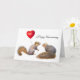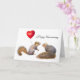 Um par de esquilos comemora com um balão em forma de coração vermelho neste doce cartão de aniversário.