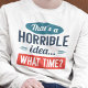Essa é uma ideia horrível.. que horas?