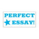 Este design de carimbo encorajador apresenta a mensagem "PERFECT ESSAY!". Ele também apresenta uma forma decorativa de estrela. Pode ser usado por um professor, educador ou orientador ao marcar trabalhos, para indicar que o aluno fez um trabalho de excelente.