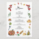 Menu com pizza de macarrão e ilustrações de comida italianas.