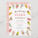 Tenha um partido do sorvete para seu pequeno este verão! Este convite adorável do aniversário caracteriza sorvetes coloridos e bonitos e popsicles e uma parte traseira cor-de-rosa do céu.