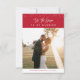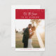 Um design festivo com uma foto de casamento dos recém-casados, e um lindo roteiro branco de pincel em um fundo vermelho. Os recursos deste cartão podem ser personalizados.