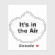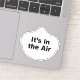É um adesivo em forma de mascarado com as palavras "está no ar" como um lembrete de que Covid está no ar.