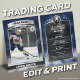 Ponha-se grande com este cartão de troca de hóquei em gelo personalizado com um design de estádio azul e prata! Perfeito para jovens atletas, equipes esportivas ou fãs de hóquei, este modelo de cartão de troca editável permite personalizar estatísticas de jogadores, nome de equipe e foto para um visual profissional e colecionável. Seja para presentes de fim de temporada, guardas de equipe, ou lembranças pessoais, este cartão é um dever para qualquer estrela ascensão.