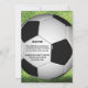 Se seu filho é um entusiasta do futebol com sonhos da Copa do Mundo, então este convite para o Bar Mitzvah que tem uma imagem de um estádio de futebol noturno com uma estrela brilhante de David brilhando na grama verde e bola de futebol pode ser uma maneira perfeita de celebrar seu grande dia. Este convite de futebol tem o nome do seu filho impresso em uma fonte verde de aparência desportiva com o nome hebraico dele em branco abaixo. O dorso tem uma grande bola de futebol preto e branco com texto de recepção opcional impresso a preto. Exclua as palavras aqui se quiser usar o cartão de recepção de coordenação.