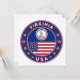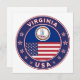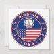 Crachá do Estado da Virgínia com bandeira da Virgínia e bandeira dos EUA, cores, forma arredondada. Emblema da Virgínia. Selo da Virgínia. Coleção dos Estados Unidos.