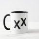 Esta caneca de café branca da campainha com guarnição e o punho pretos da borda ostenta o grande selo do estado de Jefferson em um lado, e o símbolo dobro de X no outro. O dois Xs simbolizam o que os autores do feltro do movimento eram a "dobro-cruz" das pessoas por seus representantes em suas capitais de estado respectivas - Salem em Oregon, e em Sacramento em Califórnia.