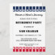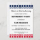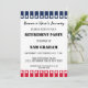 Celebre a honrosa aposentadoria de um soldado com estes convites para aposentadoria militar patrióticos. Apresentando a icônica bandeira dos EUA em vermelho, branco e azul vibrantes, estas cartas são uma forma perfeita de honrar os seus anos de serviço. Personalize o design com o nome, a classificação e a ramificação de serviço do aposentado para criar uma manutenção verdadeiramente personalizada. Perfeito para qualquer festa ou evento militar de reforma.