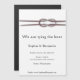 Estamos a casando e a pedir para reservar a data. Um nó elegante um símbolo de casamento enfeita o cartão magnético acompanhado das informações sobre quem e quando e onde o casamento terá lugar. O cartão magnético permite facilmente colocar o anúncio do casamento em um lugar visível. Entre em contato conosco para obter informações sobre a personalização.