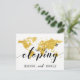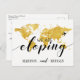 Estamos a anunciar com um elegante mapa mundial do ouro. Cartaz personalizado para sua recepção casual do elopemento poste.