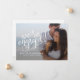 Este adorável anúncio de noivado apresenta a frase "estamos engajados!" em caligrafia branca e pode ser posicionado em qualquer lugar do cartão. Os campos de texto são personalizáveis.
