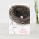 Fotografia de um ninho de pássaro com dentro de ovo cor-de-rosa, anunciando "Estamos Esperando".