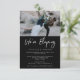 Celebre o futuro casal com este adorável e elegante anúncio de fuga e convite! Este design apresenta um espaço para incluir uma foto do seu casamento e uma fonte manuscrita rústica! Altere facilmente todos os detalhes para o seu evento ou anúncio!
