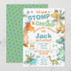 Entre em um mundo de diversão pré-histórica com o nosso convite de aniversário STOMP! e CHOMP! em tons azuis e verdes cativantes. Perfeito para crianças que adoram dinossauros, este convite personalizável prepara o cenário para uma celebração incrível. Adicione o nome da sua criança, detalhes da festa e uma mensagem pessoal para torná-lo único. Não perca essa oportunidade de criar um convite atraente que promete um tempo incrível – encomende agora para uma festa inesquecível!