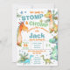 Entre em um mundo de diversão pré-histórica com o nosso convite de festa de aniversário STOMP! e CHOMP! em tons azuis e verdes cativantes. Perfeito para crianças que adoram dinossauros, este convite personalizável prepara o cenário para uma celebração dino-mite. Adicione o nome da sua criança, detalhes da festa e uma mensagem pessoal para torná-lo único. Não perca essa oportunidade de ter um convite que promete um tempo incrível – encomende agora para uma festa inesquecível!