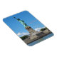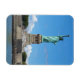 A famosa Estátua da Liberdade no porto de Nova Iorque não muito longe da Ilha Ellis. Mostre orgulhosamente no seu frigorífico.