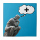 A Estátua Pensadora de Rodin com Sinal de Mais na Bolha Pensada - Pense Positiva para Pensadores Positivos ou Pessoas Que Precisam Mudar A Sua Forma Negativa De Pensar.