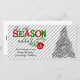Cinza e fundo de faixa diagonal branca com árvore de Natal e texto vermelho, preto e verde que diz "Tis the Season to be jolly Fa La La La La La!" Você pode personalizar facilmente este cartão antes de fazer pedidos com seu próprio texto!