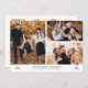 Cartão de modelo Elegante de Foto de Natal com um texto que diz "Esta é a estação para ser feliz" na parte inferior com uma ilustração. 3 fotos na frente e 1 na parte traseira.