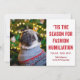 É a época do ano em que jogamos inibições e padrões de moda pela janela em favor de suéteres feios, chapéus ridículos e coletes de joias com pescoço de tartaruga. Alguns de nós até fazem os nossos animais de estimação parte do jogo da vergonha e os vestem em traje sazonal questionável. Este cartão destina-se a qualquer adulto, criança ou animal que seja sujeito a escolhas de moda questionáveis em nome da difusão da alegria de férias. Afinal, é a estação para humilhação da moda. (Fundo do osso do cão por okeykat em Unsplash)