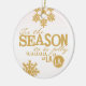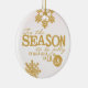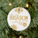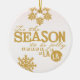 Bonito ornamento cerâmico de Natal com o nosso Tis, o design da Estação, com um texto tipográfico de ouro que diz Tis the Season para ser Jolly Fa la la la la la la e tem flocos de neve de ouro. As costas têm texto decorado que lê Feliz Natal e uma área para personalizar com seu nome familiar, nomes próprios e ano atual!