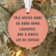 "ESTE ESCRITÓRIO FUNCIONA NO TRABALHO DE DURO, NO LANÇAMENTO E EM TODO UM CAFÉ!" Enfeites de natal do Word Art por Design de Gráfico de Negócios Macacos.