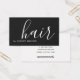 Simples modelo de cartão de negócios totalmente personalizável com texto legal em negrito, ícone de pino de cabelo na parte traseira. Design elegante, perfeito para cabeleireiro, cabeleireiro, cabeleireiro.