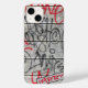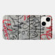 Capa de telefone em uma cinza e estilo de Grafite vermelho. Adicione o nome do proprietário do telefone. As cores principais são vermelho e cinza.