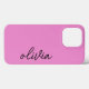 Esta moderna capas de iphone roxa apresenta texto personalizável em um estilo manuscrito em preto. Fácil de atualizar o modelo - adicione qualquer texto que desejar. Disponível em capas rígidas e com poucos estilos para todos os modelos de iPhone.