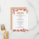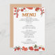 Este é um modelo de menu de janto de Ação de Graças com um design de tema de Ação de Graças. O menu pode ser personalizado com o seu próprio conjunto de receitas e pode ser selecionado num número de modelos. O menu é escrito em uma fonte formal e é bem organizado. Seria um excelente adicional a qualquer mesa de janto de Ação de Graças.