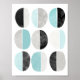 Ao estilo escandinavo, geométrico, impressão de poster abstrato com meio círculo aflitos em cinzas, turquesa e preto.
