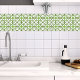 Decorativo pintou o azulejo tradicional marroquino. Estes padrões geométricos criam uma bonito reviravolta para a sua cozinha ou detalhes de sotaque em decoração domiciliar. Um padrão mediterrânico geométrico, intrincado e suave, em verde e branco.