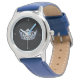 Este relógio de pulso infantil galeante apresenta uma pulseira azul real, um rosto preto com marcas de Cinza de pomba e uma coroa tipo Blue & Silver Miss America no centro. Fique atento a outros estilos também.