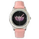 Este relógio de pulso infantil galeante apresenta uma pulseira rosa, um rosto preto com marcas de Cinza de pomba e um tipo de coroa rosa e prata americana no centro. Fique atento a outros estilos também.