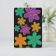 Flores do estilo 70 em fundo preto e no reverso de um Poema de Aniversário Escocês ranhoso inspirado nos anos 70.