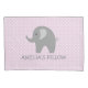Pessoalizado fronha de almofada para quarto de crianças com elefante rosa e cinza. Lindo caso de almofada para quarto de crianças com bezerro cinza / animal do zoológico. Decoração personalizada para casa da criança. Adicione seu próprio nome, citação engraçada ou monograma. Ilustração com tema safari para filho, filha, neto, sobrinho, neto, etc. Design neutro para menino ou menina. Cor de fundo personalizada atrás de bolinhas. Impressão de padrão de pequenas bolinhas. Ideia divertida de presente de aniversário ou Natal.