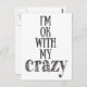 NewParkLane - Cartão-postal com uma citação engraçada "Estou bem com a minha loucura", na tipografia moderna escrita à mão.