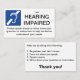 A insuficiência auditiva pode ser desafiadora. Comecei a perder da minha audição há mais de 10 anos, e lutei mais recentemente. Sei que há muitos que sofrem. Para ajudar, pensei em entregar cartões de visitas em restaurantes e empresas, para que as pessoas entendessem melhor a minha deficiência e fossem mais adequadas para me ajudar. Estas também são excelentes se alguém for parado pela polícia ou precisar de ajuda de um bombeiro ou funcionarios EMS. Permite que o primeiro respondedor entenda melhor as minhas necessidades e como me ajudar a seguir melhor as instruções.