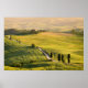 Poster de uma paisagem na Toscana com a famosa estrada de Bianca (estrada branca/terra) Gladiator Road em direção a Terrapille com ciprestes no início da manhã perto de Pienza, no Vale de Val d'Orcia, em Itália.