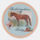 estragou meu clássico adesivo redondo no diário de cavalos, com saco de cavalos de guloseimas e cenouras